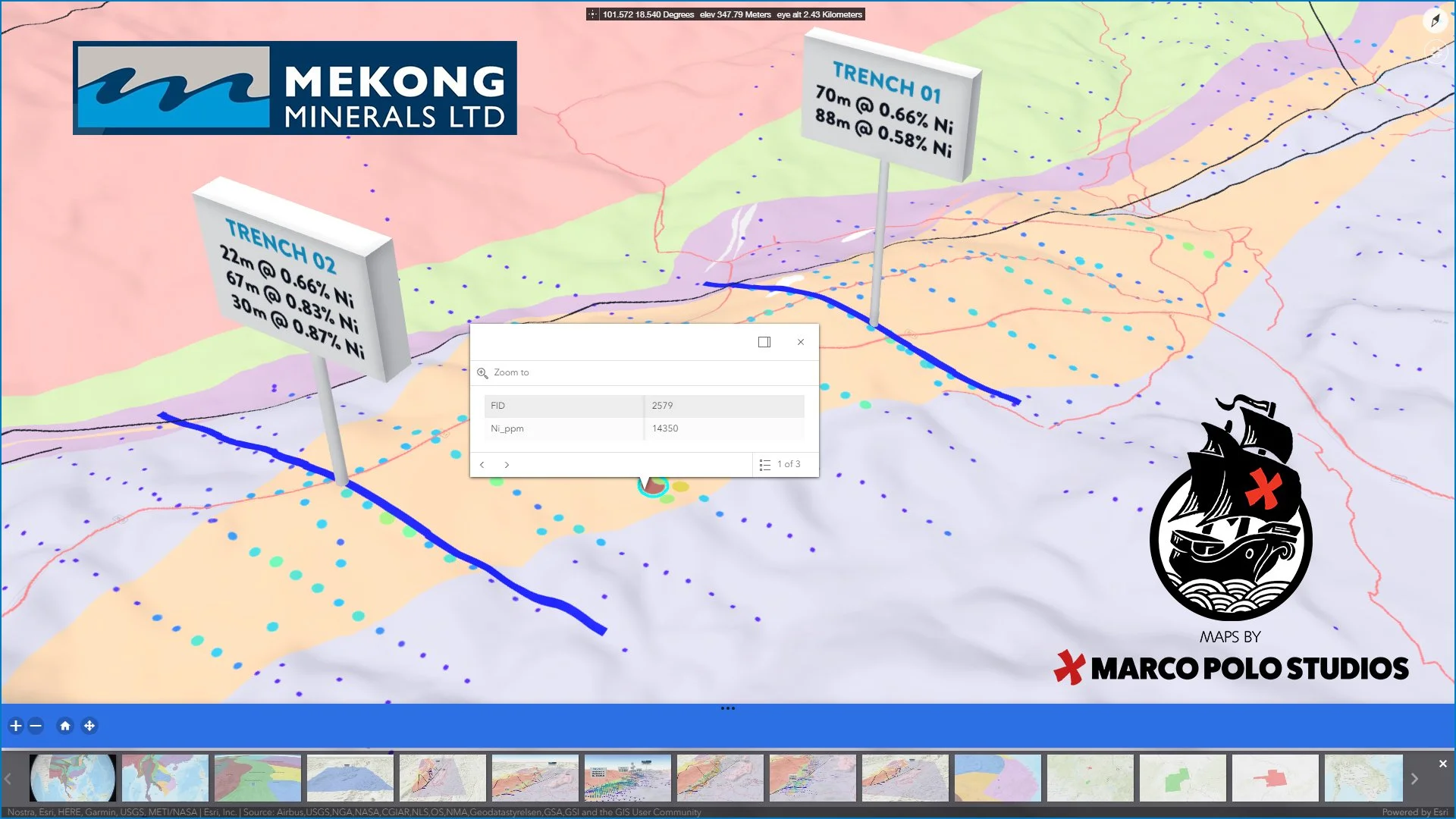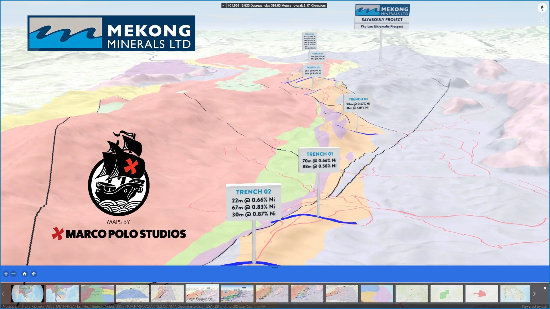 Interactive 3D Web Map visualizes SE Asia Geology, Local Geology, Drill Program, Trench + Core Samples Nickel % + SE Asia Project Locations.