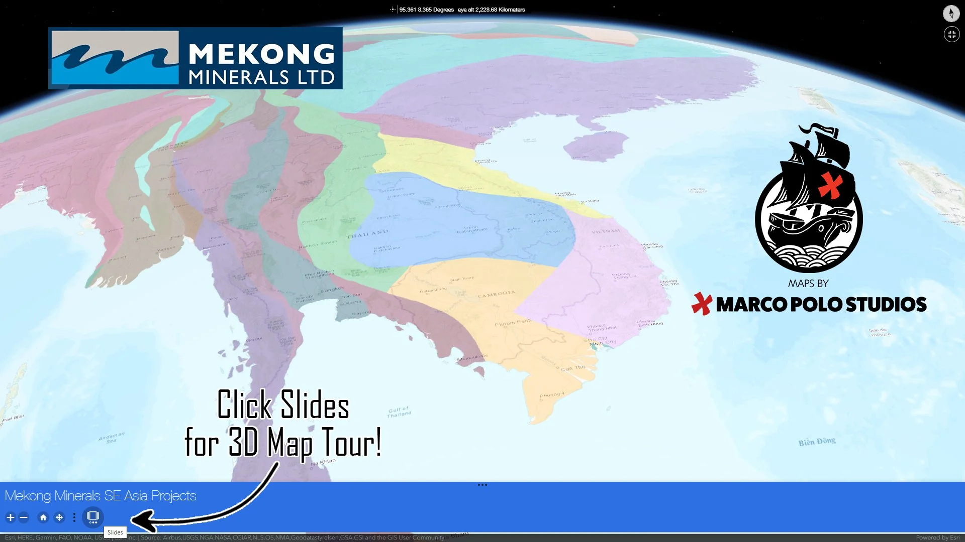Marco Polo Studios created a 3D Map Virtual Tour of Mekong Minerals Ltd. Projects in Laos + Cambodia: Sayabouly / Kratie North / Snoul.