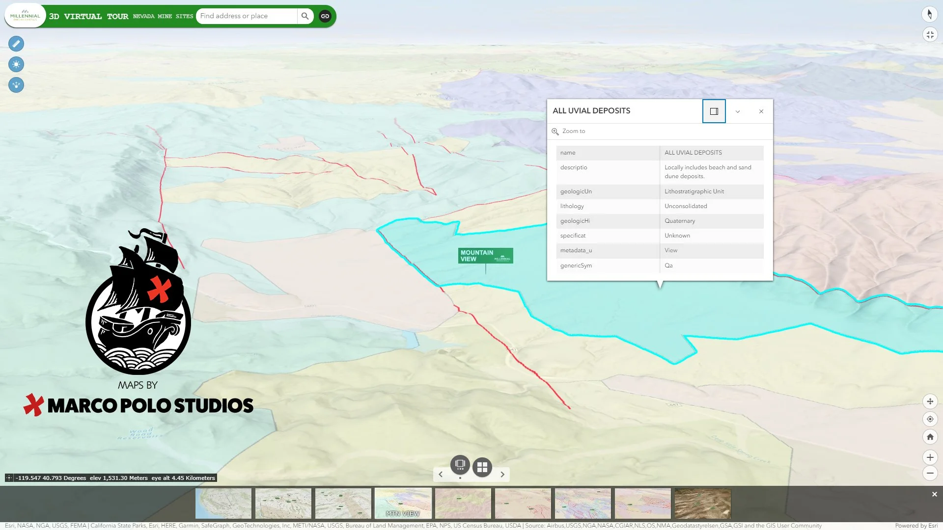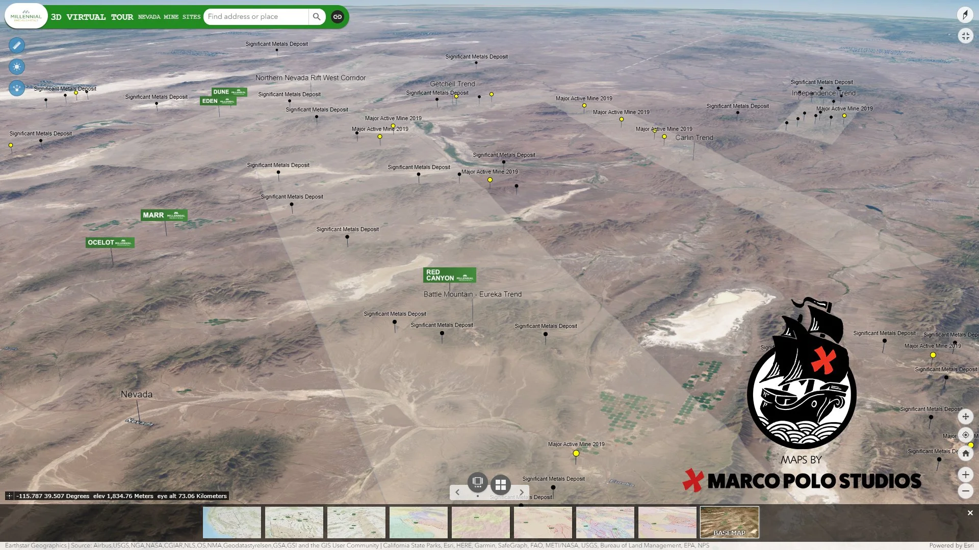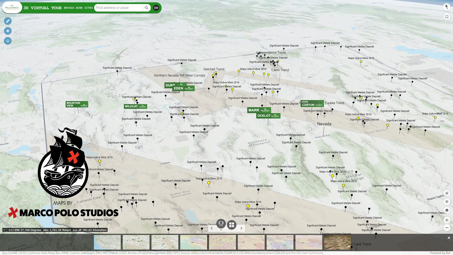 Marco Polo created a 3D Map Virtual Tour visualizing Millennial Precious Metals Projects in Nevada, USA.